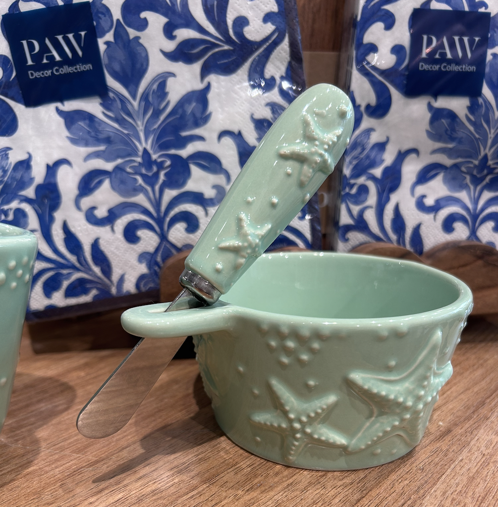 DIP BOWL W/ SPREADER - COASTAL MINT