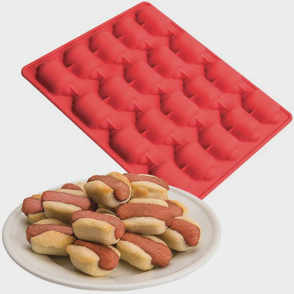 Make snack time more fun with mini hotdog-shaped treats; bake 12 treats at a time with this baking mold